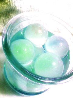 写真は寒天のデザートです(ビー玉じゃないよ!)